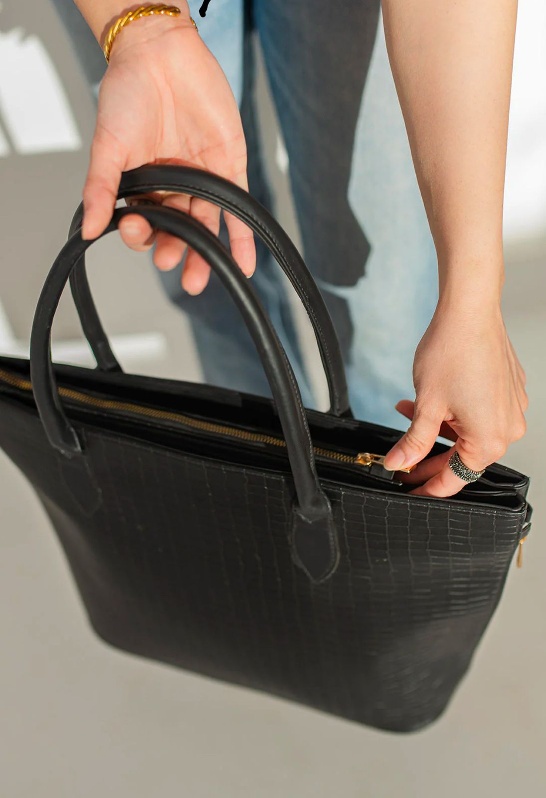 SIDE ZIP TOTE 02- BLACK